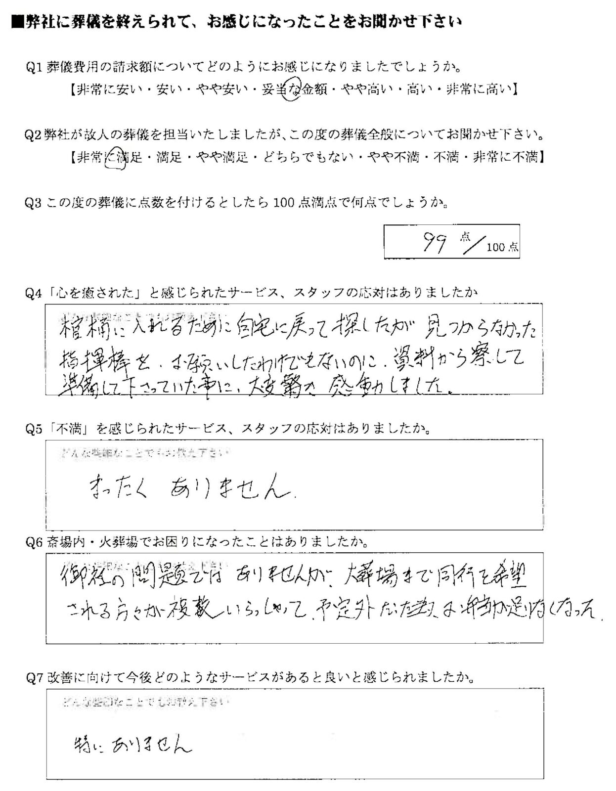 Q この度の葬儀で満足を感じられた事をお聞かせ下さい