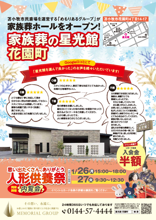 内覧会&人形供養祭のお知らせ|家族葬の星光館 花園町で開催!