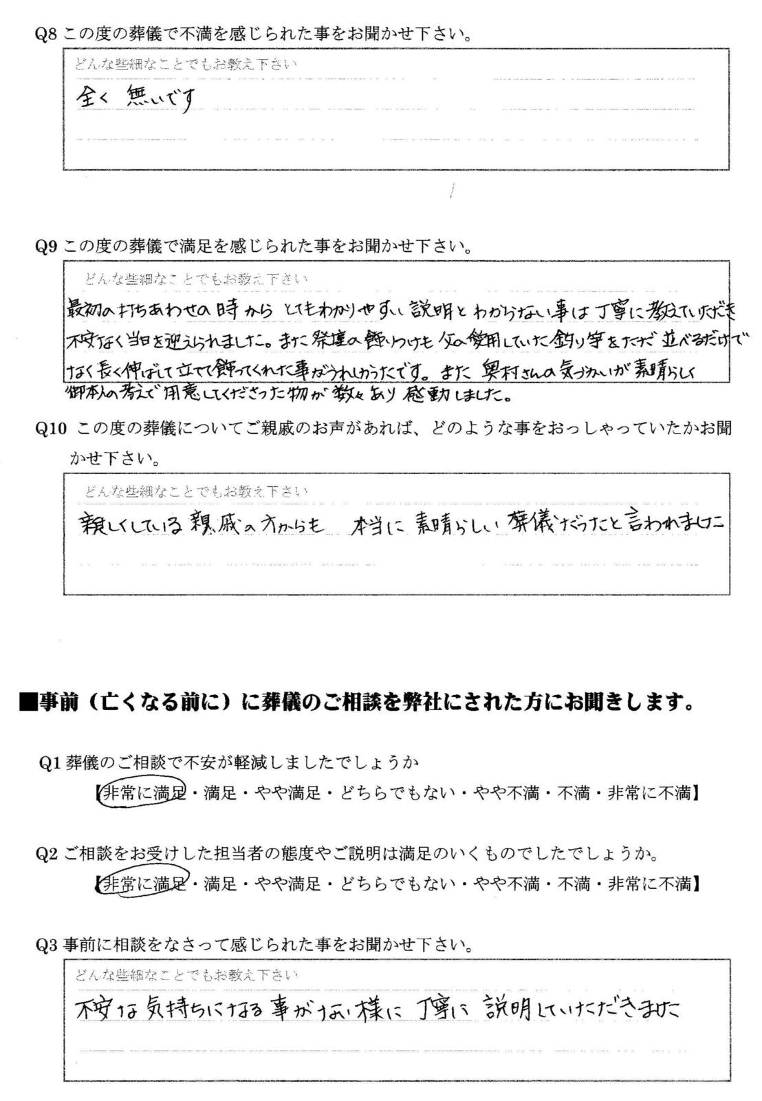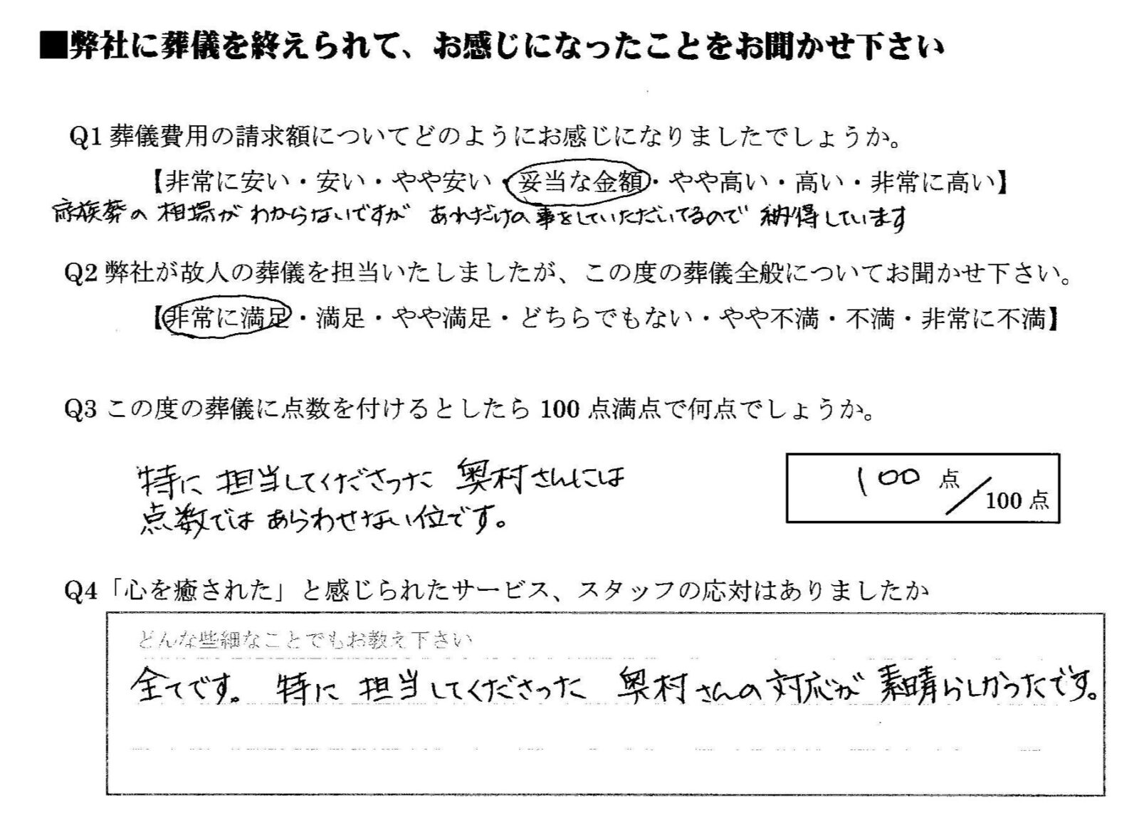 Q この度の葬儀で満足を感じられた事をお聞かせ下さい