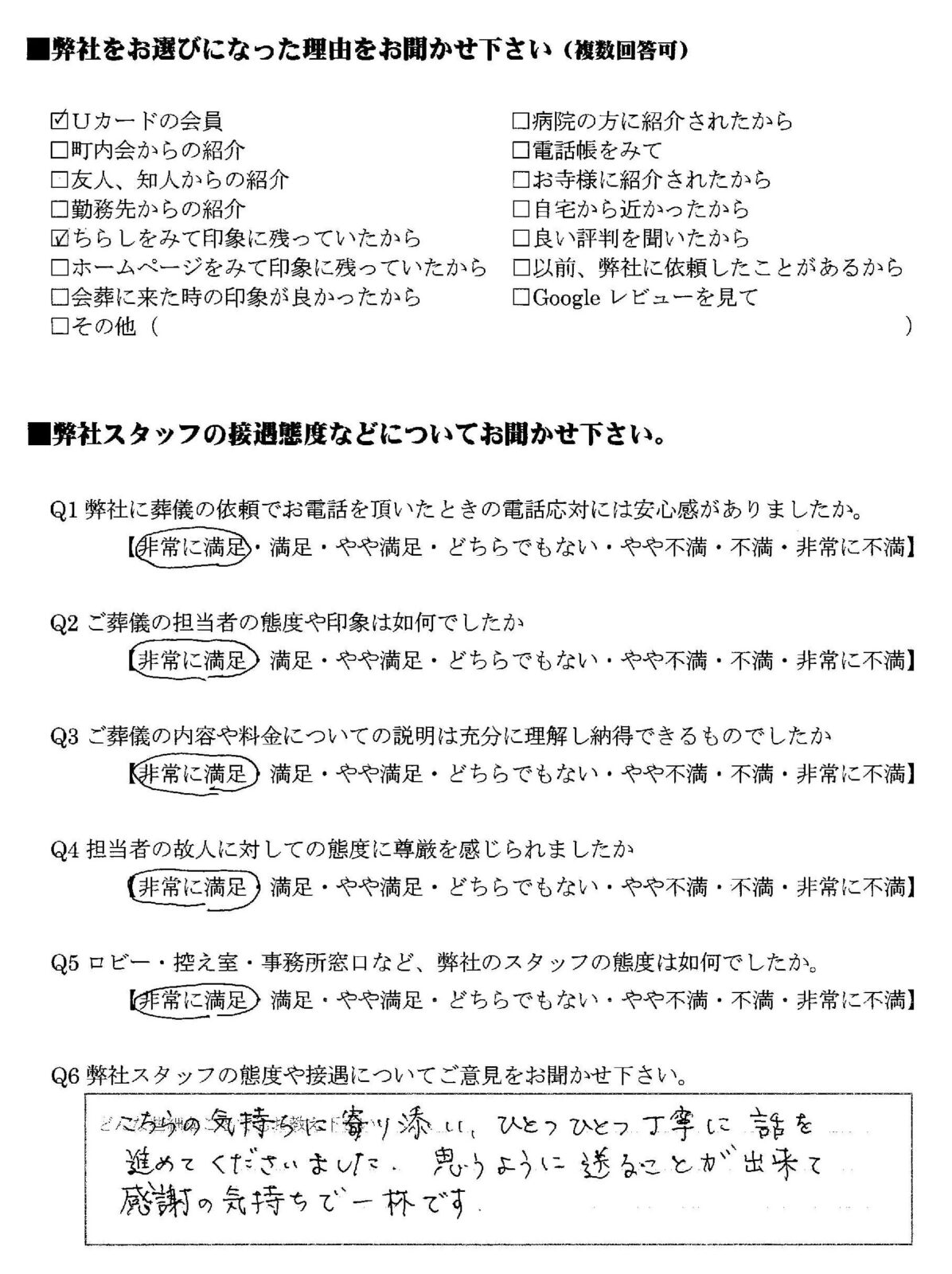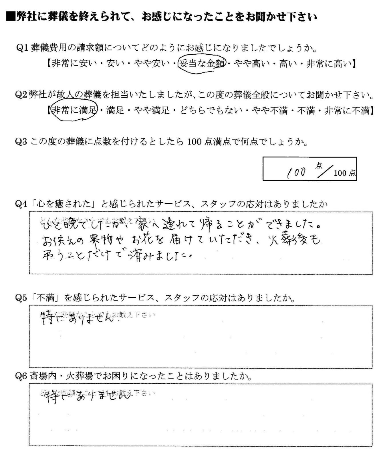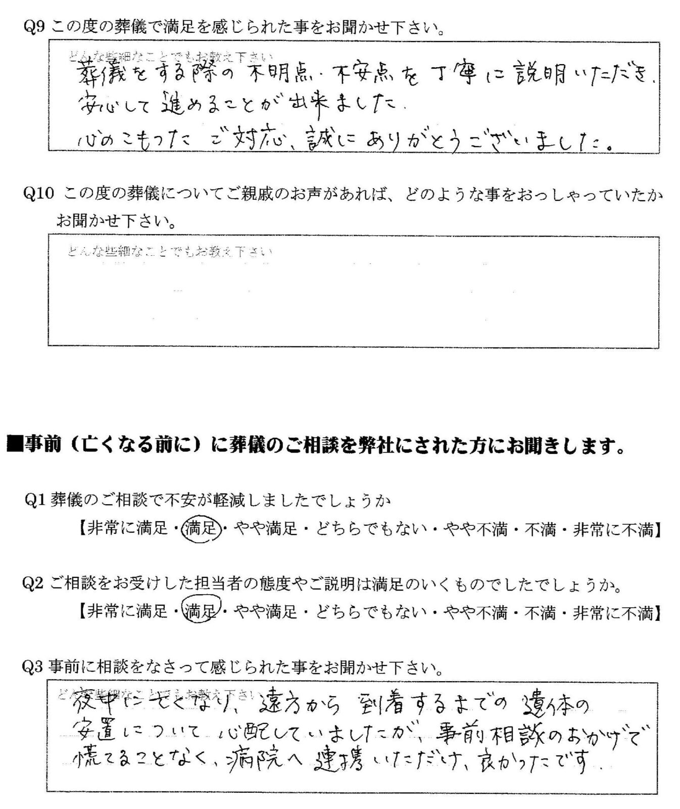 Q この度の葬儀で満足を感じられた事をお聞かせ下さい